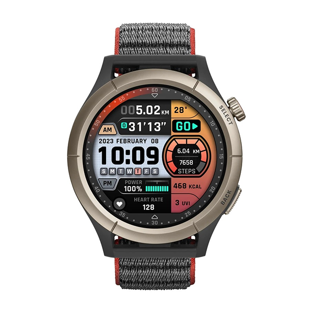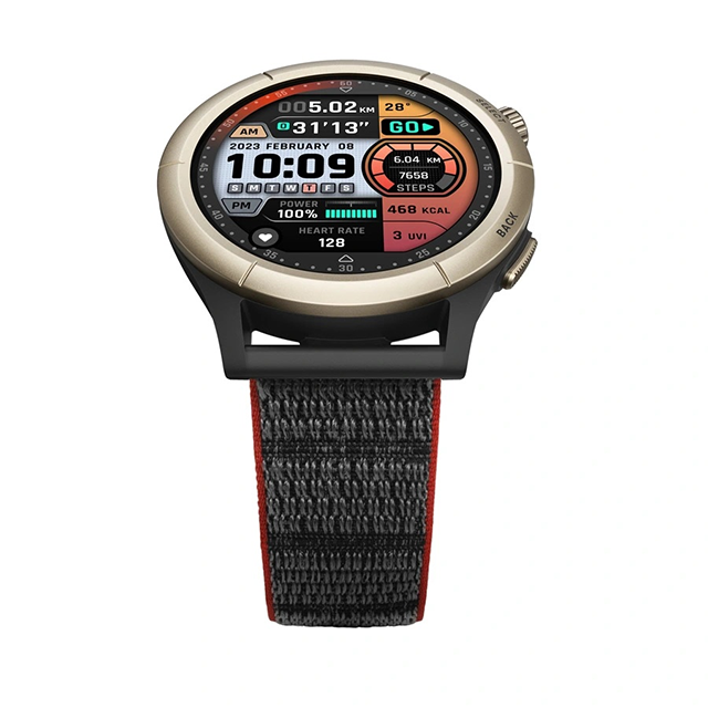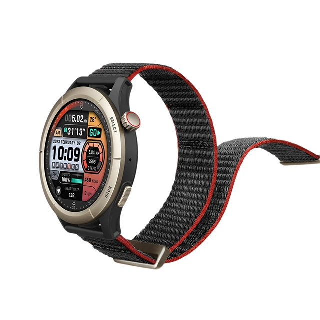Amazfit Cheetah Pro được thiết kế cho những người đam mê chạy bộ, chế tạo bằng polyme gia cố bằng sợi nhẹ đi kèm với dây đeo nylon thoải mái.