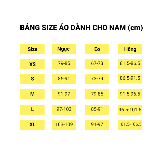 Bảng quy định size
