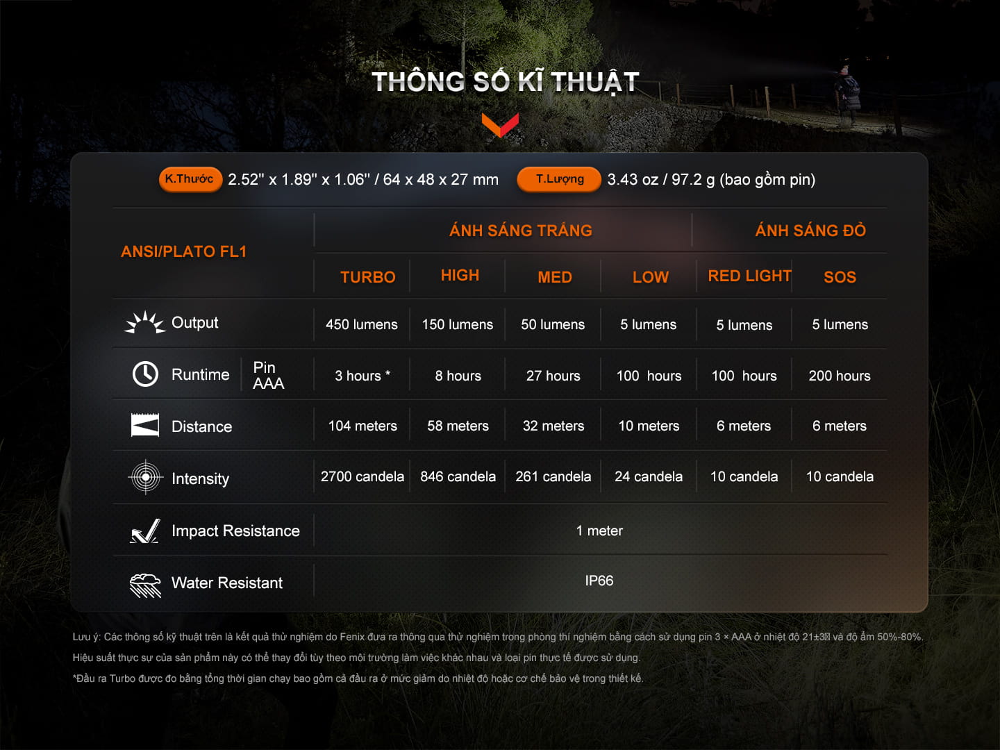 Tóm lại, với chỉ số IP66 và khả năng chống sốc 1 mét, Fenix HL16 chịu được những tình huống bất ngờ mà vẫn hoạt động ổn định. Đây cũng là nền tảng cho chế độ bảo hành 5 năm đầy tự tin của Fenix.