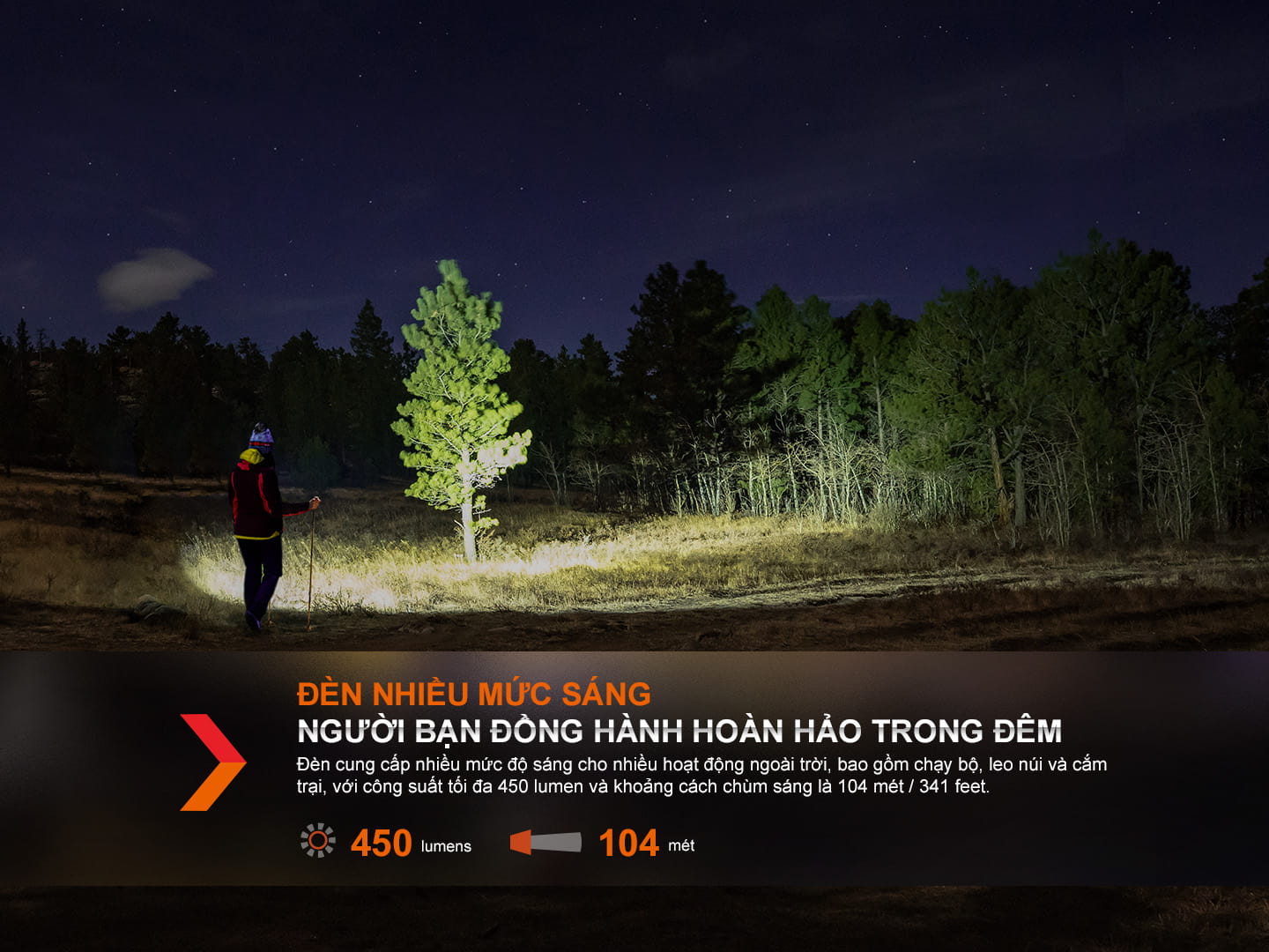 Có, nhưng phải hiểu đúng kiểu trail và đúng cách dùng thì mới “hợp”. Với trail có xuất phát hoặc về đích vào ban đêm, thứ bạn cần không chỉ là nhìn thấy đường, mà là đủ sáng để đọc địa hình và phản ứng kịp (đá rời, rễ cây, hốc bùn, cua gắt, cành ngang…). Vì vậy, nếu bạn dùng Fenix HL16 để đi trail trong rừng tối, cách dùng thực tế là ưu tiên Turbo 450 lumens (chiếu xa 104m) để đảm bảo vùng nhìn đủ rộng và đủ xa cho an toàn. Các mức thấp hơn như 150/50 lumens nên hiểu là để đi chậm ở những nơi có sáng, leo dốc chậm,.. hoặc là để dùng hàng ngày, không trong chạy bộ.