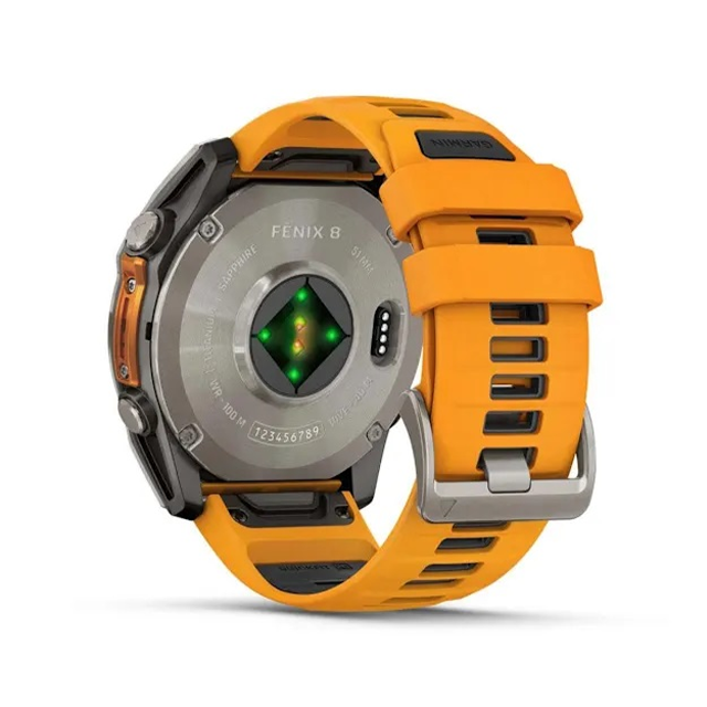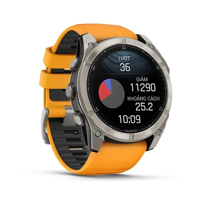 Fēnix 8 - 47 mm là chiếc đồng hồ thể thao cao cấp hàng đầu với màn hình AMOLED 1,4 inch sáng cùng tùy chọn ống kính chống trầy xước và vành titan.