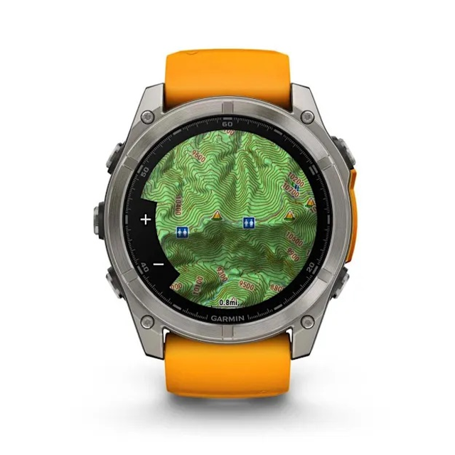 Fēnix 8 - 51 mm là chiếc đồng hồ thể thao cao cấp hàng đầu với màn hình AMOLED 1,4 inch sáng cùng tùy chọn ống kính chống trầy xước và vành titan.