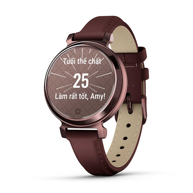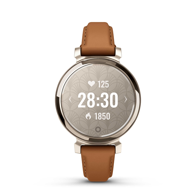 Garmin Lily 2 là chiếc đồng hồ thông minh nhỏ gọn, thời trang với vỏ kim loại, ống kính có hoa văn, chỉ cần chạm để hiển thị màn hình sáng.