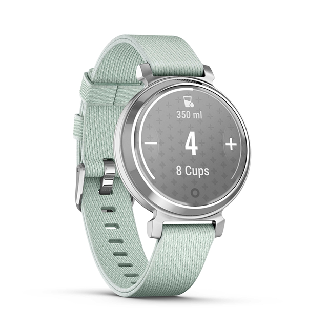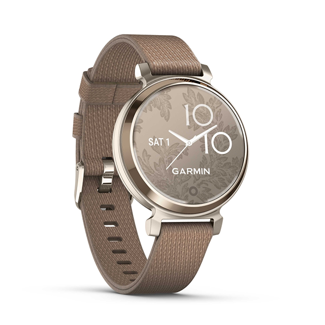 Garmin Lily 2 là chiếc đồng hồ thông minh nhỏ gọn, thời trang với vỏ kim loại, ống kính có hoa văn, chỉ cần chạm để hiển thị màn hình sáng.