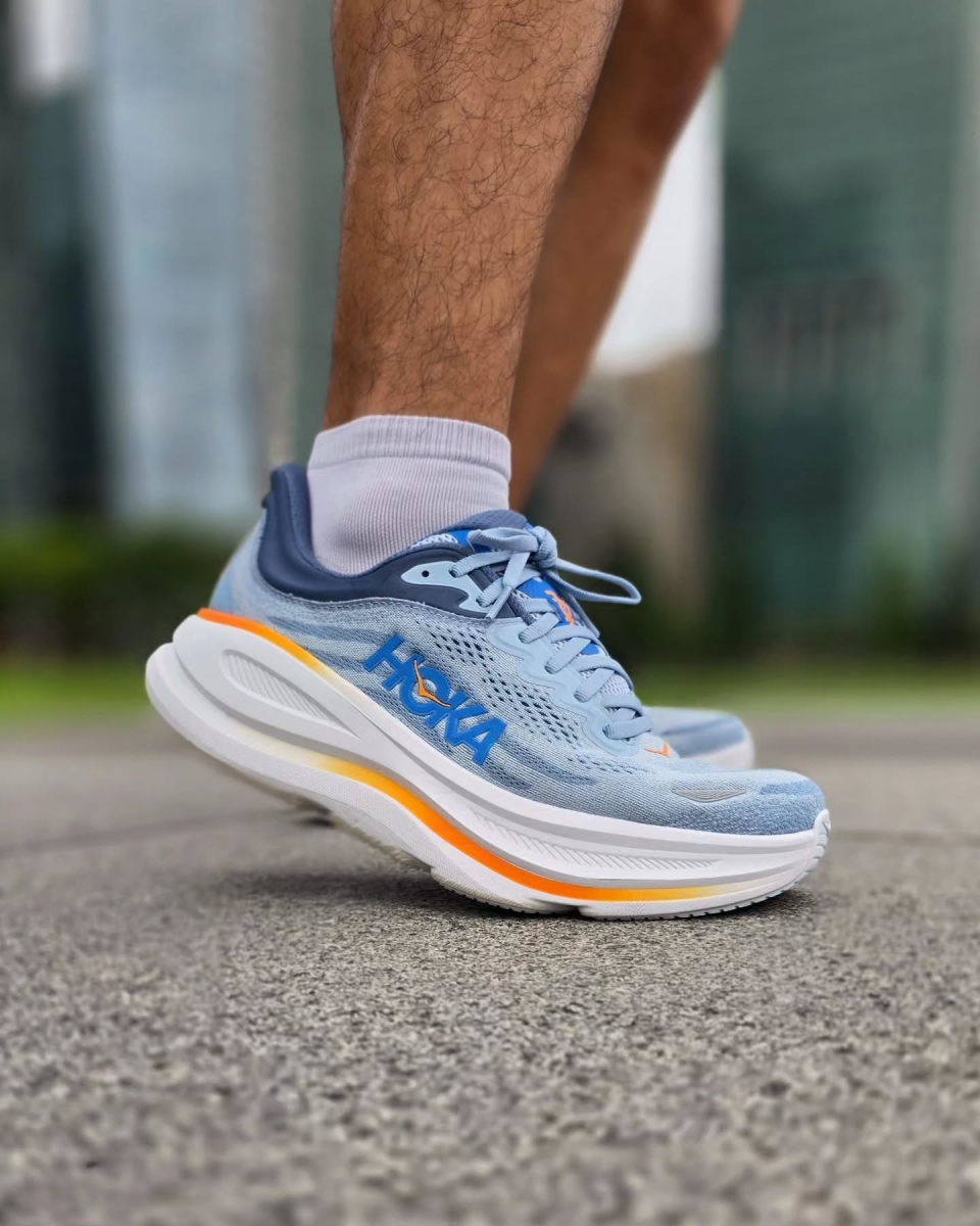 Không giống các đôi giày “êm kiểu lún” gây cảm giác nặng nề, Bondi 9 cho cảm giác như có lực nâng nhẹ từ dưới gót chân. Cảm giác chạy không bị mất phương hướng hay lệch trục – thậm chí còn ổn định hơn nhờ chiều rộng đế và thiết kế ôm trọn bàn chân từ dưới lên (Active Foot Frame).