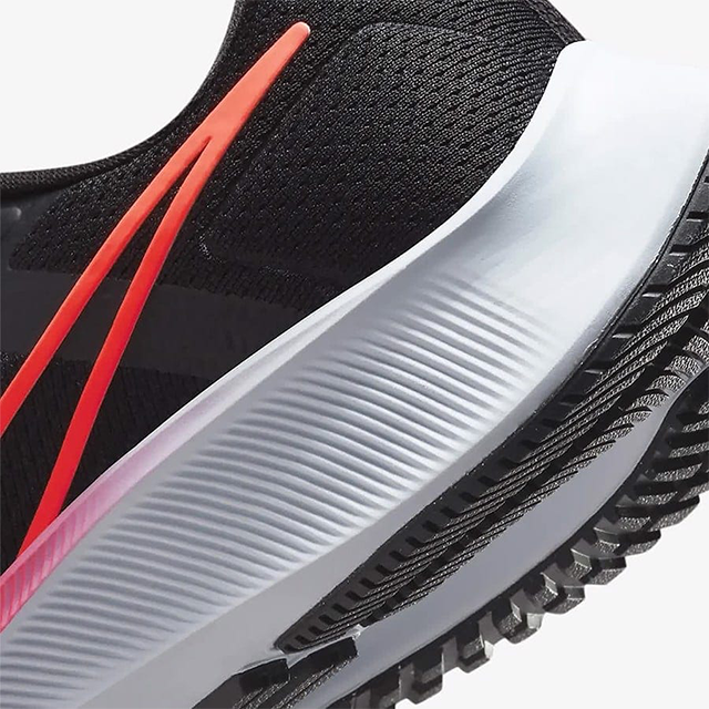 Đi kèm với đó, Pegasus 38 còn được trang bị miếng đệm Zoom Air trứ danh ở phần mũi giày giúp tăng cường độ bật và tạo cảm giác nhạy bén khi chân tiếp xúc với mặt đất. Cùng với khả năng cung cấp độ ổn định, tăng cường khả năng giảm chấn vốn đã cao của lớp đệm Nike Reat giúp toàn bộ phần đế giữa mang lại cảm giác linh hoạt và khả năng hỗ trợ chân tuyệt đối cho người dùng ngay cả trong những cự ly dài.