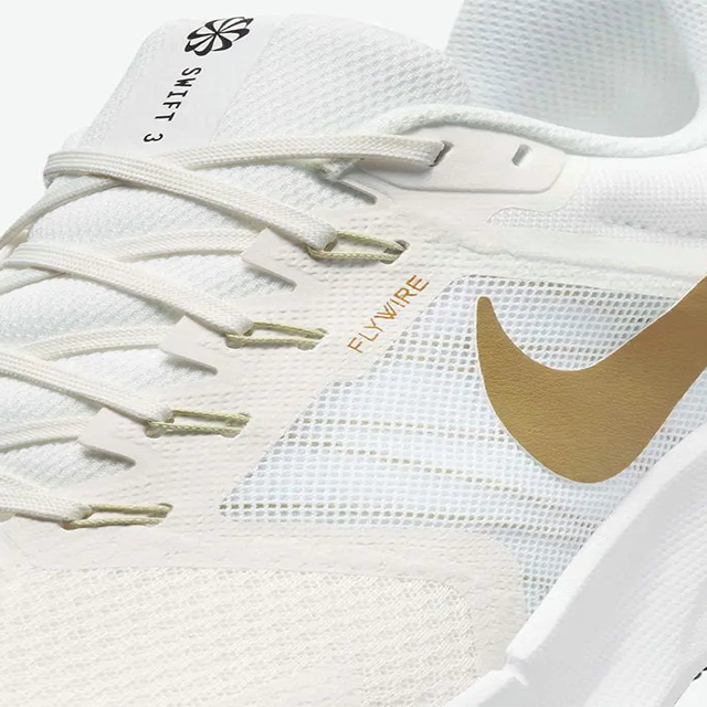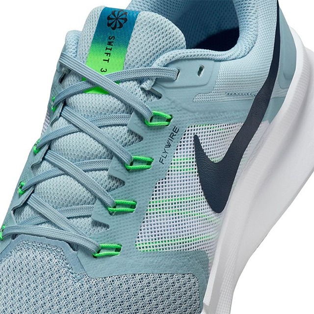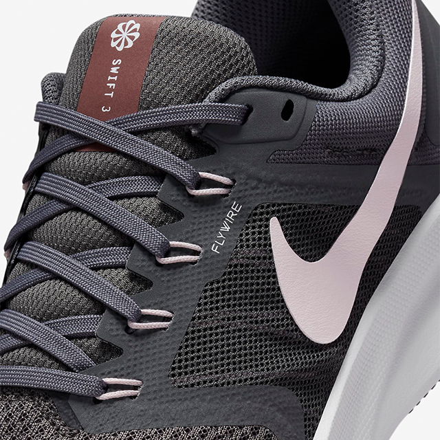 Phần lưỡi gà trên Swift 3 được trang bị miếng đệm dày dặn mang đến độ êm ái cao cho bàn chân, đặc biệt là phần mu bàn chân. Kết hợp với phần đệm mềm mại có độ bền cao được trang bị quanh phần cổ giày giúp giày có thể bảo vệ tốt phần mu bàn chân cùng phần cổ chân khỏi chấn thương khi va chạm trên đường chạy. Như nhiều mẫu giày đến từ nhà Nike, hệ thống dây buộc được trang bị trên Swift 3 là hệ thống Flywire giúp cố định tốt giày với chân mang đến sự vừa vặn, an toàn và hỗ trợ bàn chân tránh bị trơn trượt phần ngón và gót chân khi chạy
