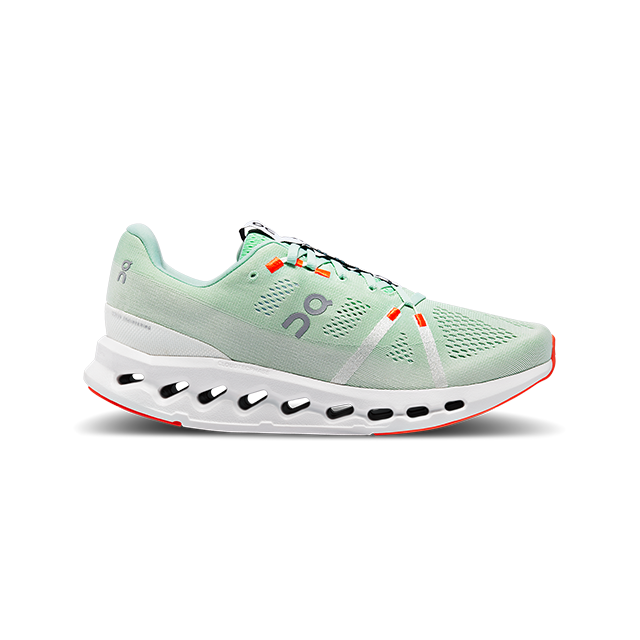 Đi cùng công nghệ lõi CloudTec® Phase, ON đã trang bị thêm cho ON Cloudsurfer miếng đệm siêu bọt từ chất liệu Helion™ thế hệ mới với trọng lượng nhẹ hơn và linh hoạt hơn giúp mang lại khả năng đệm siêu êm ái cùng độ đàn hồi ấn tượng giúp hỗ trợ chân trên những cung đường khắc nghiệt 1 cách vượt trội. Kết hợp với cấu trúc CloudTec® giúp tổng thể phần đế của Cloudsurfer mang đến độ linh hoạt tuyệt đối cùng khả năng phủ sóng trên mọi cung đường, hỗ trợ người dùng trên từng bước chân.