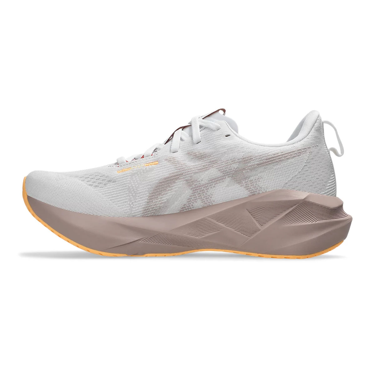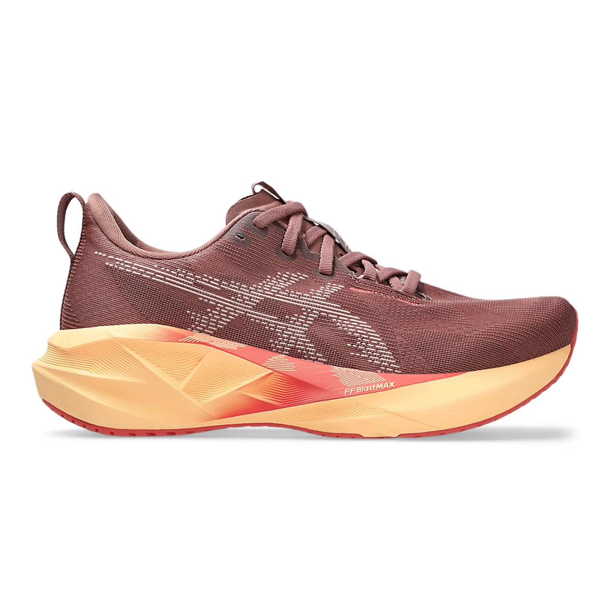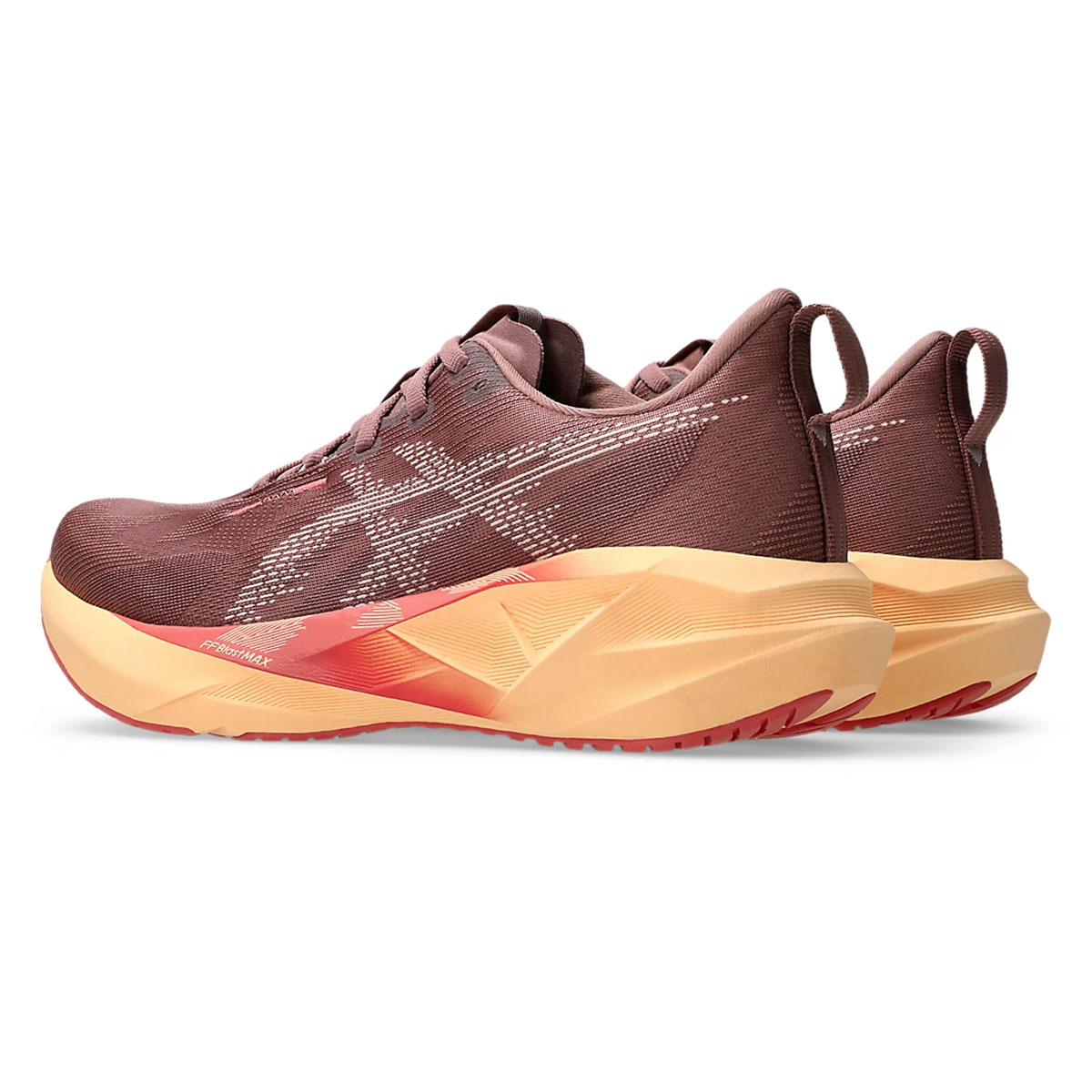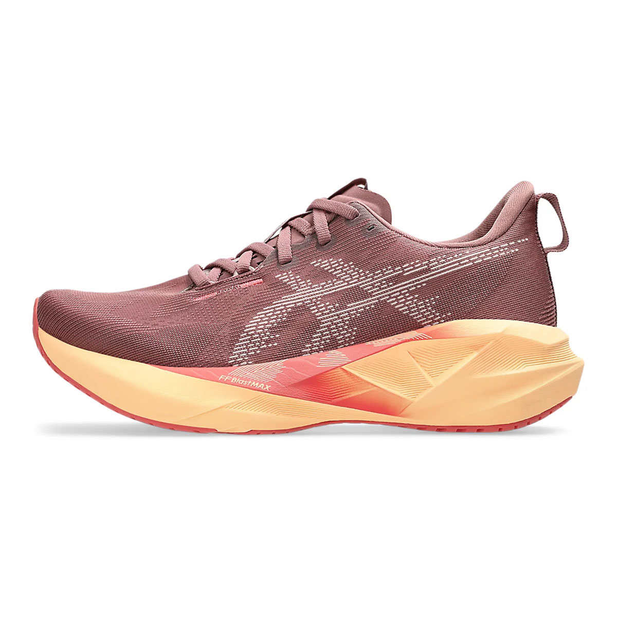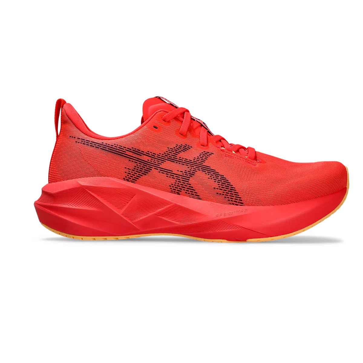 Điểm sáng lớn nhất ở Asics Novablast 5 nằm ở lớp đệm FF BLAST™ MAX. Đây là loại foam dày, nhẹ và đàn hồi tốt, giúp mỗi lần tiếp đất trở nên êm ái hơn, đồng thời trả lại nhiều năng lượng khi nhấc chân. Với độ dốc gót-mũi (drop) 8 mm và stack cao (41,5 mm gót / 33,5 mm mũi), đôi giày tạo cảm giác bảo vệ nhưng không nặng nề, rất phù hợp cho những runner nữ muốn duy trì pace ổn định trên cả quãng đường ngắn lẫn dài.