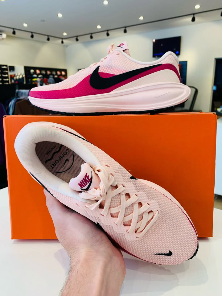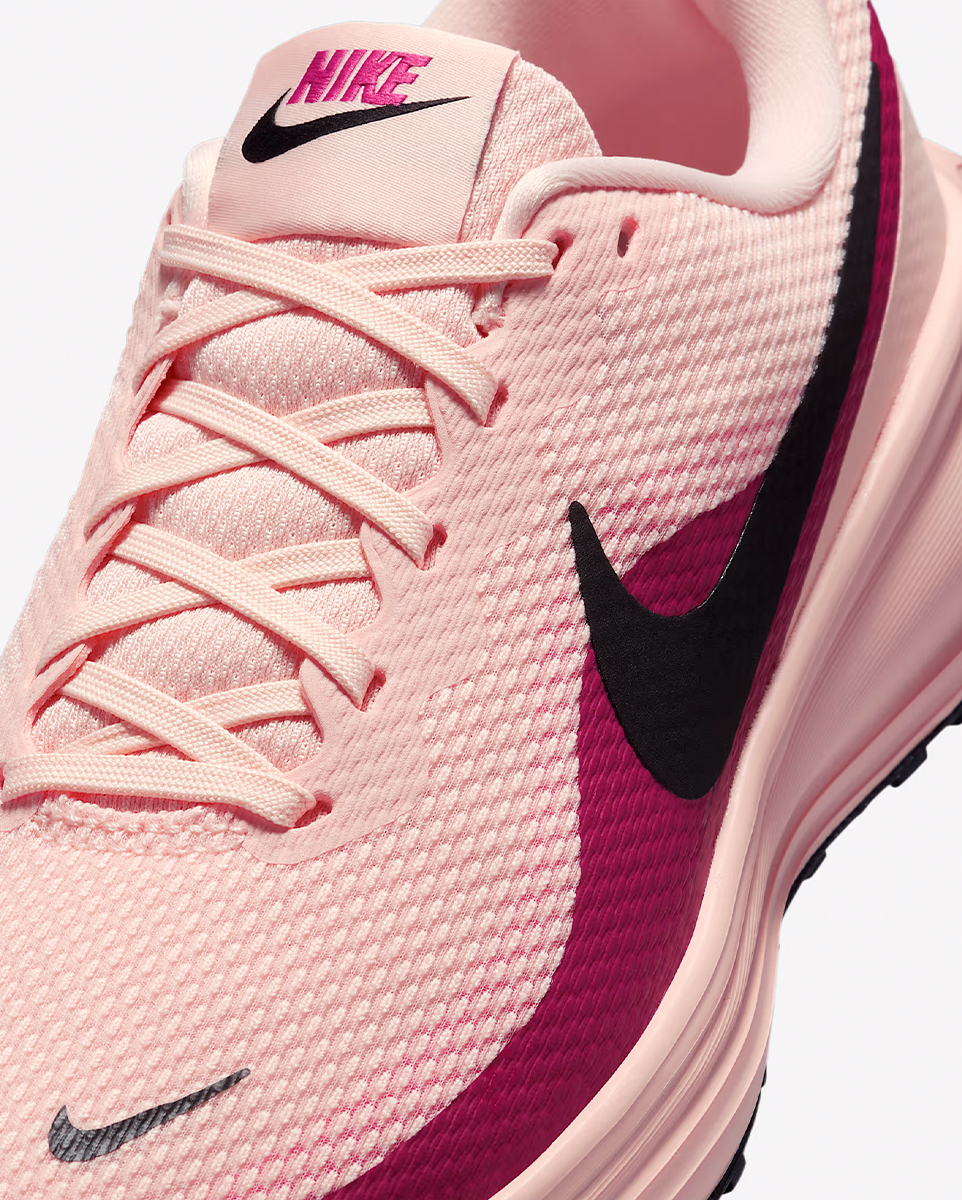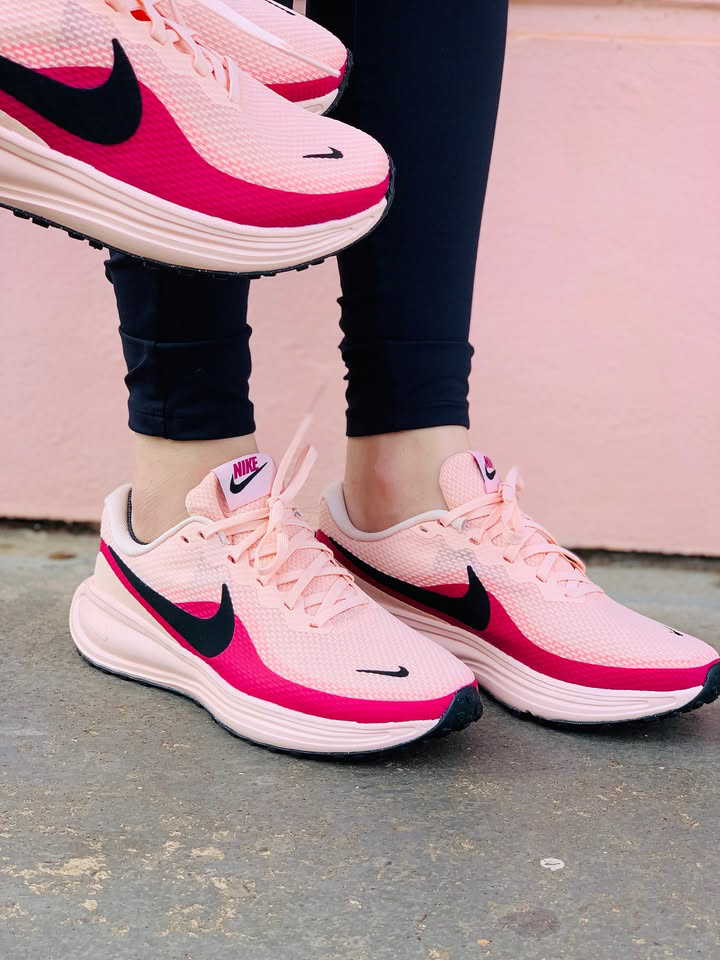 Revolution 8 nữ có phần gót và lưỡi giày được may đệm mềm, giúp chị em dễ dàng xỏ giày nhanh chóng, không bị cấn. Form dáng gọn gàng, đơn giản, cổ thấp ôm vừa bàn chân, vừa phù hợp cho chạy bộ, vừa dễ dùng như giày đi làm, đi học hoặc phối cùng trang phục thường ngày. Đây là ưu điểm khiến nhiều phụ nữ chọn Revolution 8 như một đôi giày “đa năng” trong tủ đồ.
