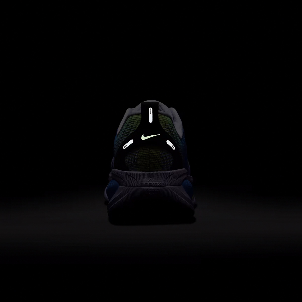 Điểm mạnh nhất của giày chạy bộ nữ Nike Vomero 18 nằm ở bộ đệm ZoomX + ReactX. Nike đã tăng thêm 6 mm đệm so với đời trước, đồng thời công bố độ êm hơn 18% so với phiên bản cũ. Với nữ runner, điều này mang lại sự thoải mái rõ rệt: mỗi bước tiếp đất nhẹ hơn, lực dội ngược ít hơn, giúp đôi chân giảm áp lực, nhất là khi chạy dài. Đây là lý do Vomero 18 thường được chọn làm đôi giày tập luyện hằng ngày và chạy dài cuối tuần của các chị em.