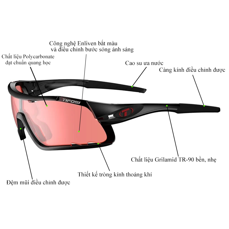 • Lớp phủ chống chói độc quyền của Tifosi giúp bảo vệ mắt tránh mệt mỏi khi sử dụng.