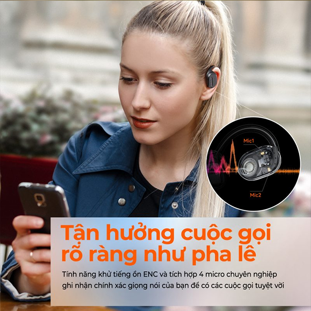 Thiết kế Open-Ear không gây đau tai, không làm nóng tai, an toàn khi chạy bộ, đạp xe, tập luyện thể thao.